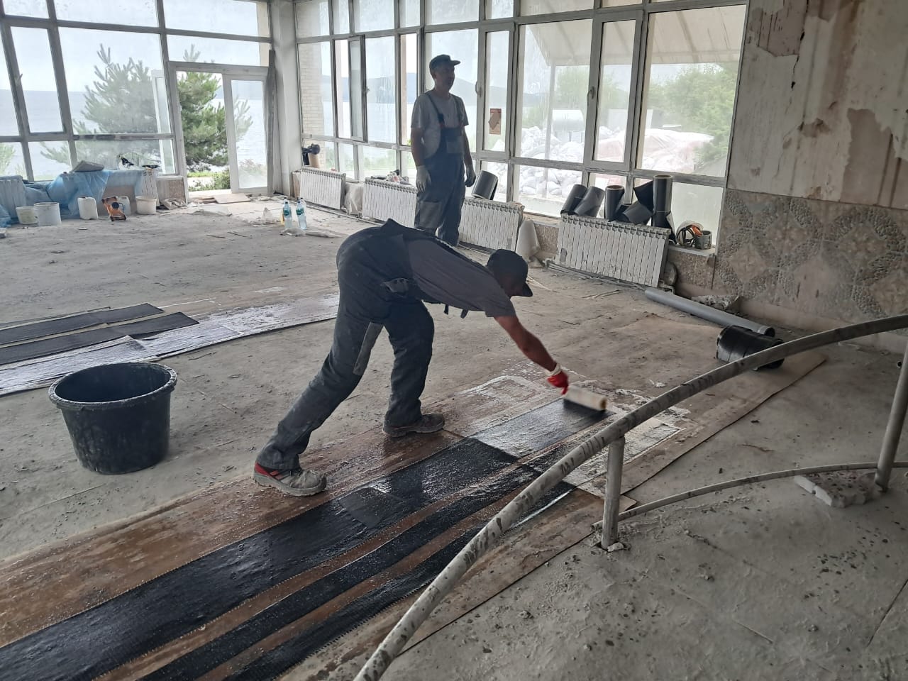Демонтаж разрушенного защитного слоя бетона на плите перекрытия и зачистка арматуры от ржавчины. Покрытие очищенной арматуры антикорозионным составом. Усиление несущей способности ригельных балок перекрытия методом иньектирования эпоксидных смол в трещины.